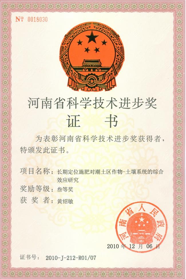 河南省科技进步三等奖--黄绍敏--2010-J-212-R01/07