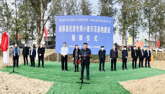 10月19日,新蔡县优质专用小麦新品种与绿色增效生产示范基地建设在孙召镇大马庄村委举行揭牌仪式。