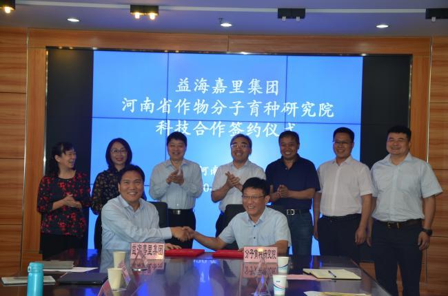 河南省作物分子育种研究院常务副院长张磊与益海嘉里集团青岛工厂总经理、花生芝麻业务部总监徐拥军代表双方签订了科技合作协议。