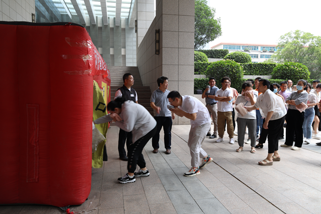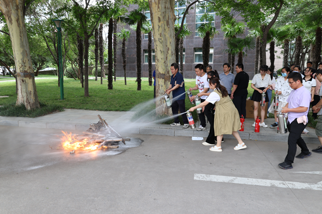 教员结合我院实际,详细地讲解了火灾的类型、灭火器种类和使用方法;实验室、办公室、配电室等重点区域安全隐患排查及日常安全防范措施;夏季汛期雷雨天气注意事项、用电安全、防火防爆安全等注意事项;常见消防设备的配置及正确使用等,并带领现场人员体验“火场”逃生模拟演习和“火灾”扑救全过程。