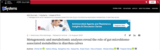 近日,我院牛羊病团队在美国微生物学会期刊mSystems(IF=6.4,中科院2区)发表了题为“Metagenomic and metabolomic analyses reveal the role of gut