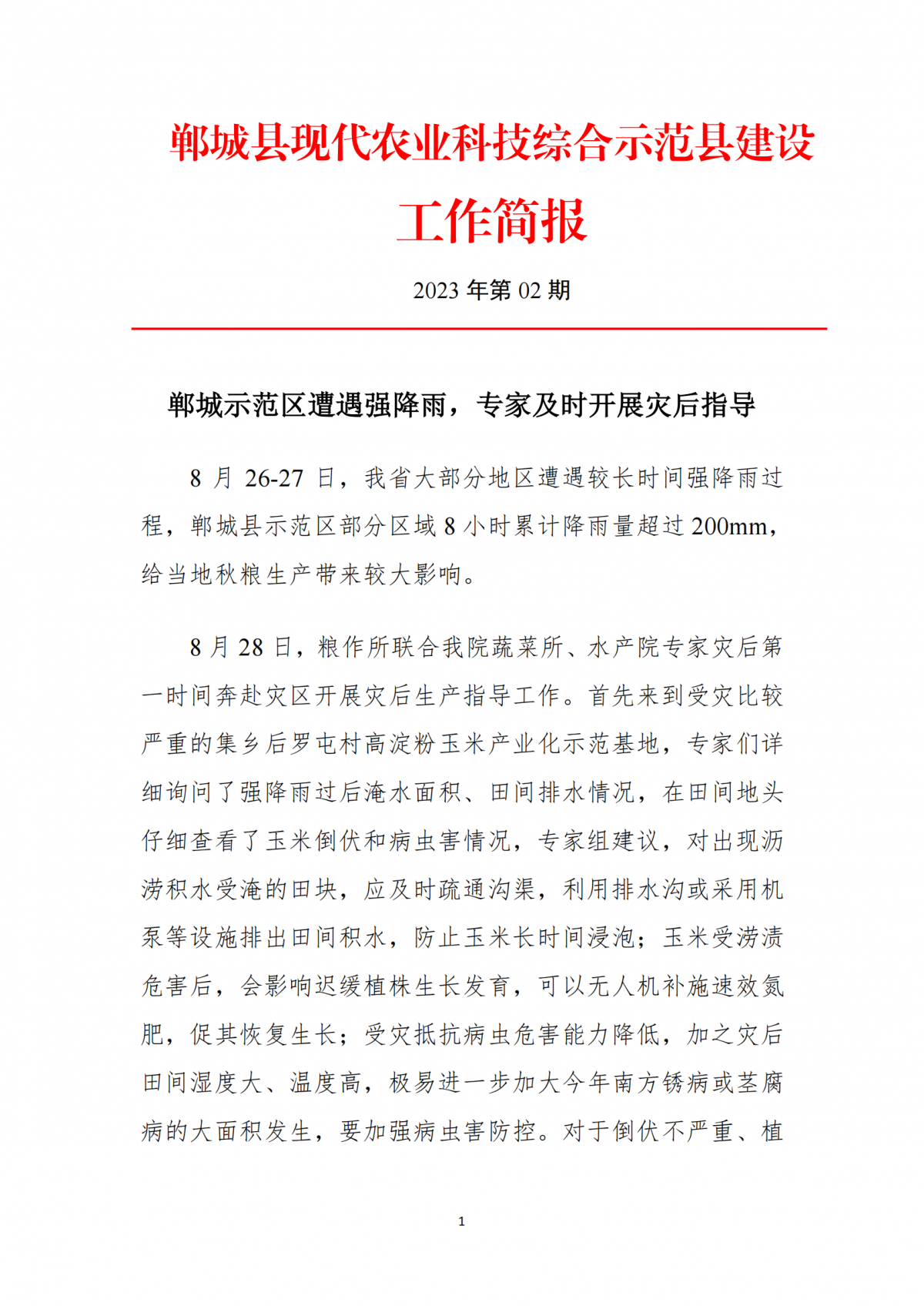 郸城县院县共建现代农业科技综合示范县建设工作简报(2023年02期)