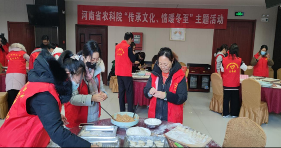 冬至冷,情意浓。冬至是我国农历中一个非常重要的节气,在冬至当天“吃饺子”是中国北方地区的传统习俗。俗话说,“冬至不端饺子碗,冻掉耳朵没人管”,为弘扬中华民族传统,活跃职工文化生活,12月22日,正值冬至佳节,院文明办、直属单位党委组织开展“传承文化、情暖冬至”主题活动,让大家齐聚一堂,感受劳动带来的乐趣,为这个寒冷的冬季注入暖暖的温情。