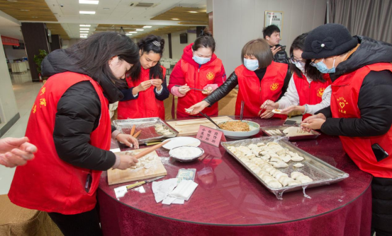 上午9时30分,院直各单位40多名志愿者陆续聚集在食堂餐桌前,餐桌上已摆放好了食堂为大家精心准备的食材。随后,职工们井然有序的开始了“工作”,有的擀皮、有的揪面团、有的包馅儿,各显身手。在包饺子的过程中,各个满怀热情、干劲十足,体验着协作的乐趣,感受着节日的温情,好一幅冬日温馨的“全家福”。