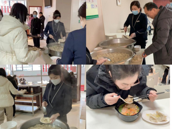在大家的共同努力下,一碗碗热气腾腾的饺子被端上了餐桌。前来就餐的职工们一边吃着刚出锅的饺子一边聊着天,气氛分外的温馨、和谐。吃在嘴上,暖在心头。一盘盘热腾腾的饺子驱散了冬日的严寒,温暖着每一位职工的心,品尝自己亲手包的饺子,分享劳动的喜悦和节日的氛围。