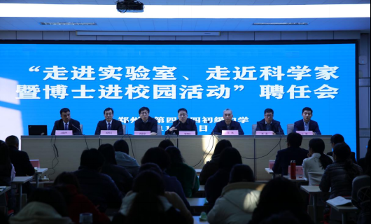 聘任仪式上,二七区教育局党组成员、副局长吴鹏致欢迎辞,并对本次活动进行鼓励、鞭策。吴鹏副局长为尚泓泉所长颁发首席科普专家聘书,禹明义校长为七位专家颁发科普导师聘书。省农科院直属单位党委专职副书记、文明办主任黎世民代表省农科院致辞,表示将以“博士进校园”活动为纽带,充分发挥科研优势,深入开展科普合作,进一步激发同学们学科学、爱科学、用科学的热情。