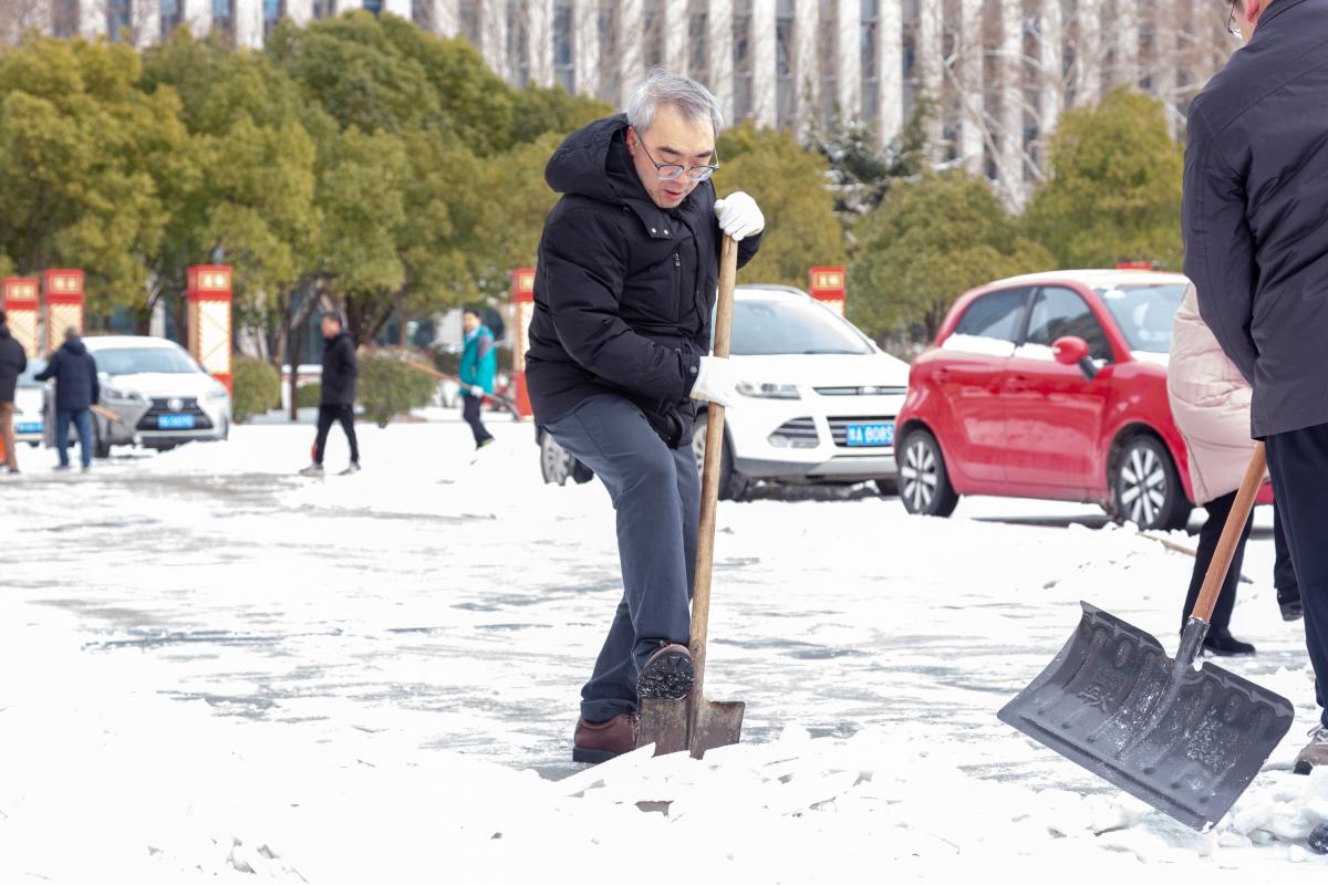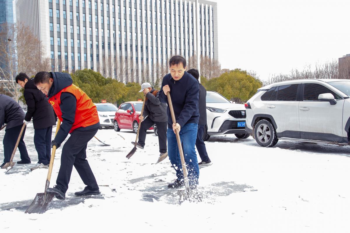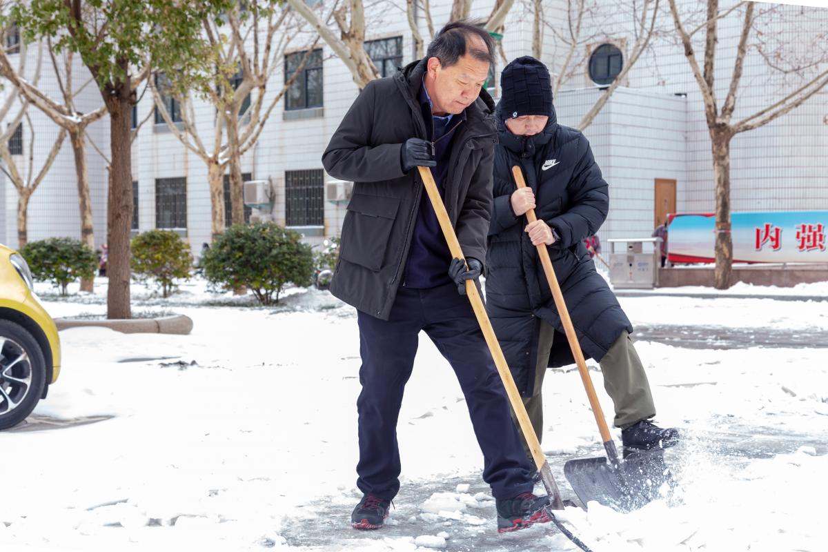 院领导班子带头发扬不怕苦不怕累的精神,闻雪而动,向前一步,率先垂范,冒着刺骨的寒风,拿着铁锹冲锋在前,为全民参与清雪除冰行动作出表率。广大干部职工迎“寒”而上,扛起铁锹、铁铲等工具,纷纷投入到除雪一线,以实际行动为保障生产、生活安全“保驾护航”。