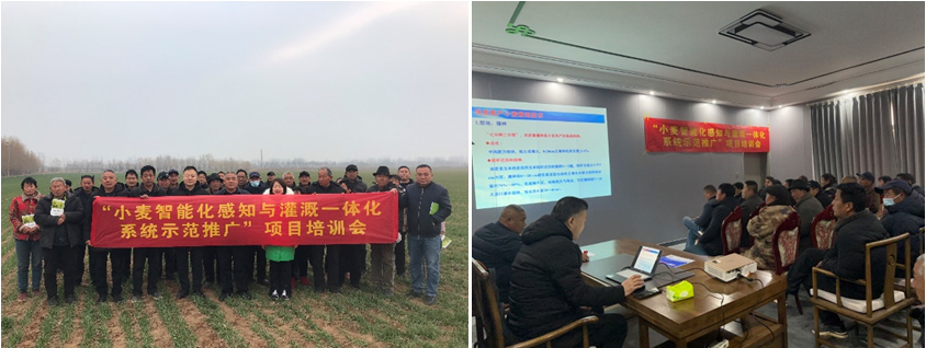 2月29日,河南省农科院资环所节水研究室杨永辉博士一行3人到中央引导地方项目“小麦智能化感知与灌溉一体化系统示范推广”实施基地兰考进行了技术培训,会上杨永辉副研究员作了题为“优质高产小麦栽培技术”的报告,系统讲解了小麦全生育期中水肥高效利用技术和病虫害防治技术,为小麦绿色高产高效提供技术支撑。针对春季小麦田间长势和土壤墒情,高翠民博士进行了因地因苗水肥管理指导,为构建合理群体结构、科学施肥和促进稳产高产提供保障。