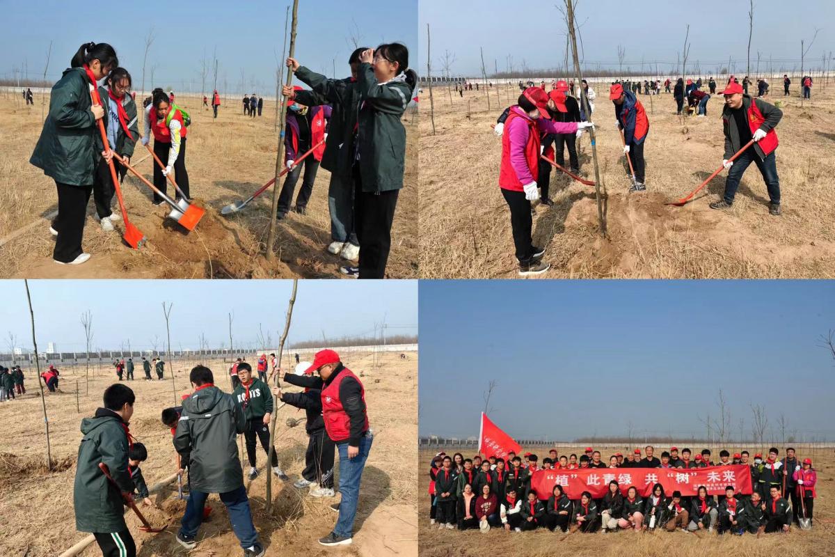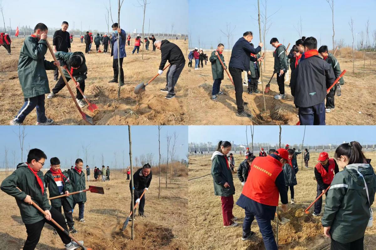 活动当天,阳光明媚,春风拂面。大家热情高涨,拿起铁铲、锄头等工具,积极参与到植树活动中。职工与学生们三、五人一组,共同扶正树苗、挥锹铲土、培实新土、堆起围堰,道道工序做得认真细致,一株株树苗稳稳在土里扎下根,经过两个多小时的辛勤劳动,共栽植娜塔栎、海棠等苗木200余株。为大地增添了一抹活力和生机。