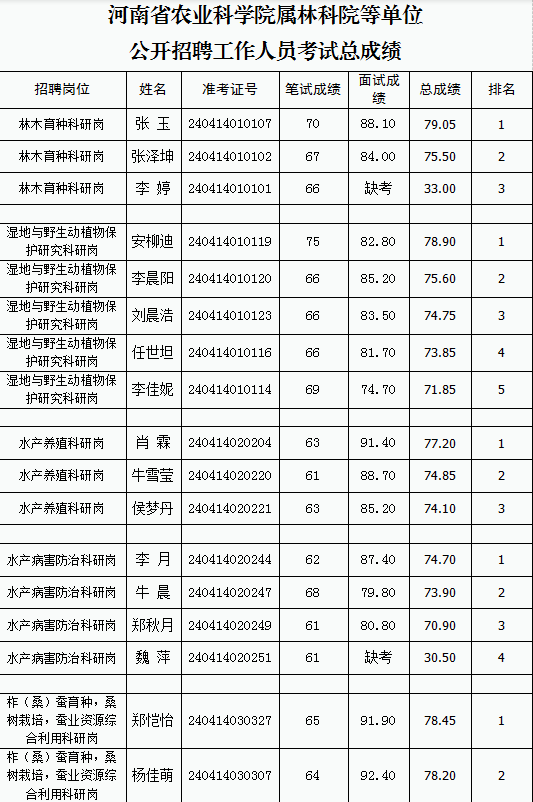24足球直播属林科院等单位公开招聘工作人员考试总成绩公告