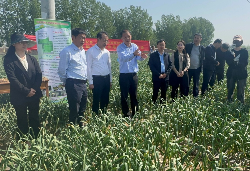 4月18日,我院在杞县召开院县共建“大蒜绿色种植及加工技术示范现场会”,副院长卫文星出席会议并讲话。杞县人民政府县长黄宗刚、副县长崔敏出席会议。