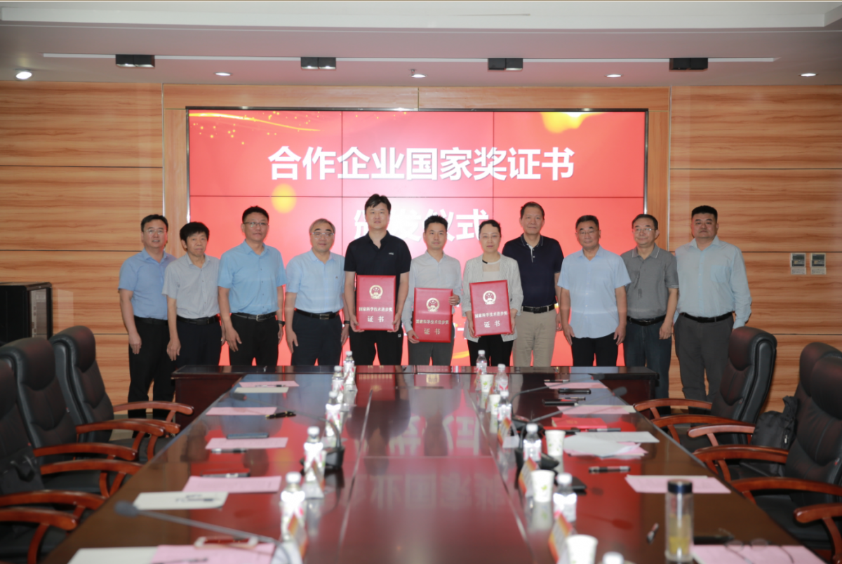 签约仪式前,张新友院长、卫文星副院长等共同见证了相关合作单位国家科技进步奖励证书领取仪式。