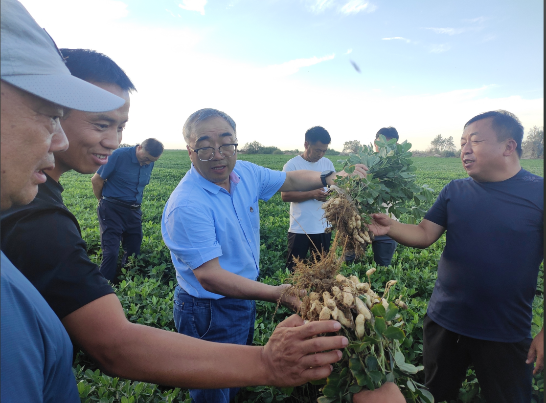 (在哈密柳树沟乡调研花生新品种栽培情况)
