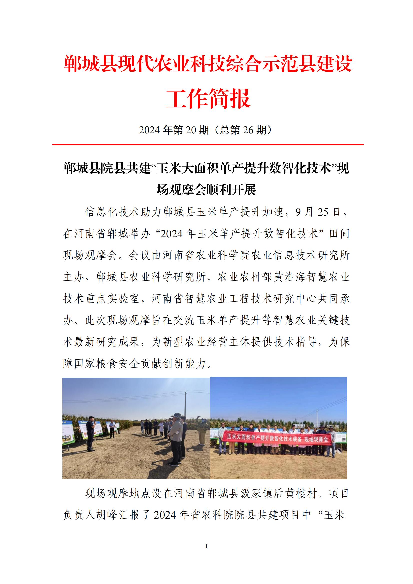 郸城县院县共建现代农业科技综合示范县建设工作简报(2024年第20期)