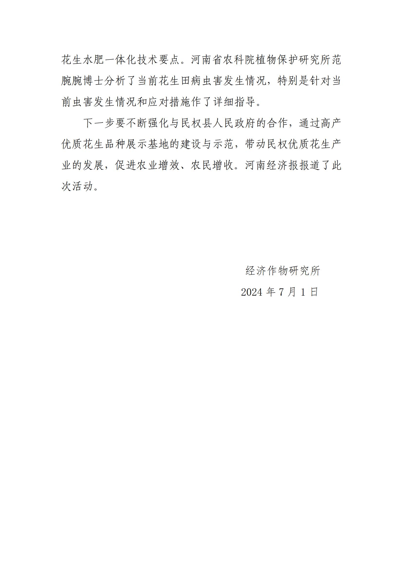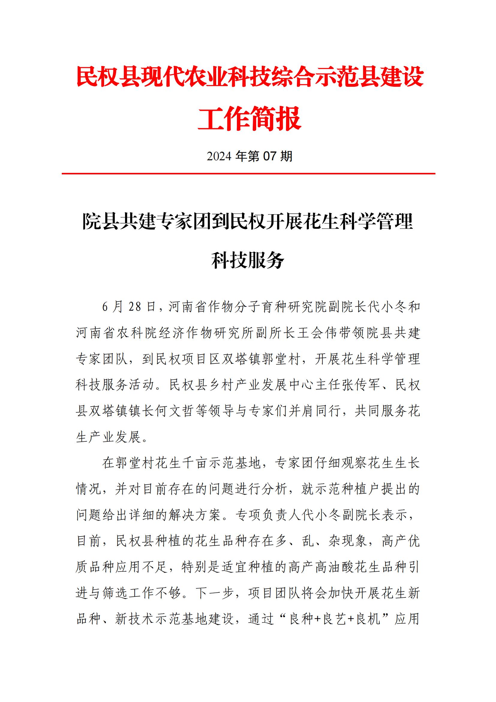 民权县院县共建现代农业科技综合示范县建设工作简报(2024年第07期)