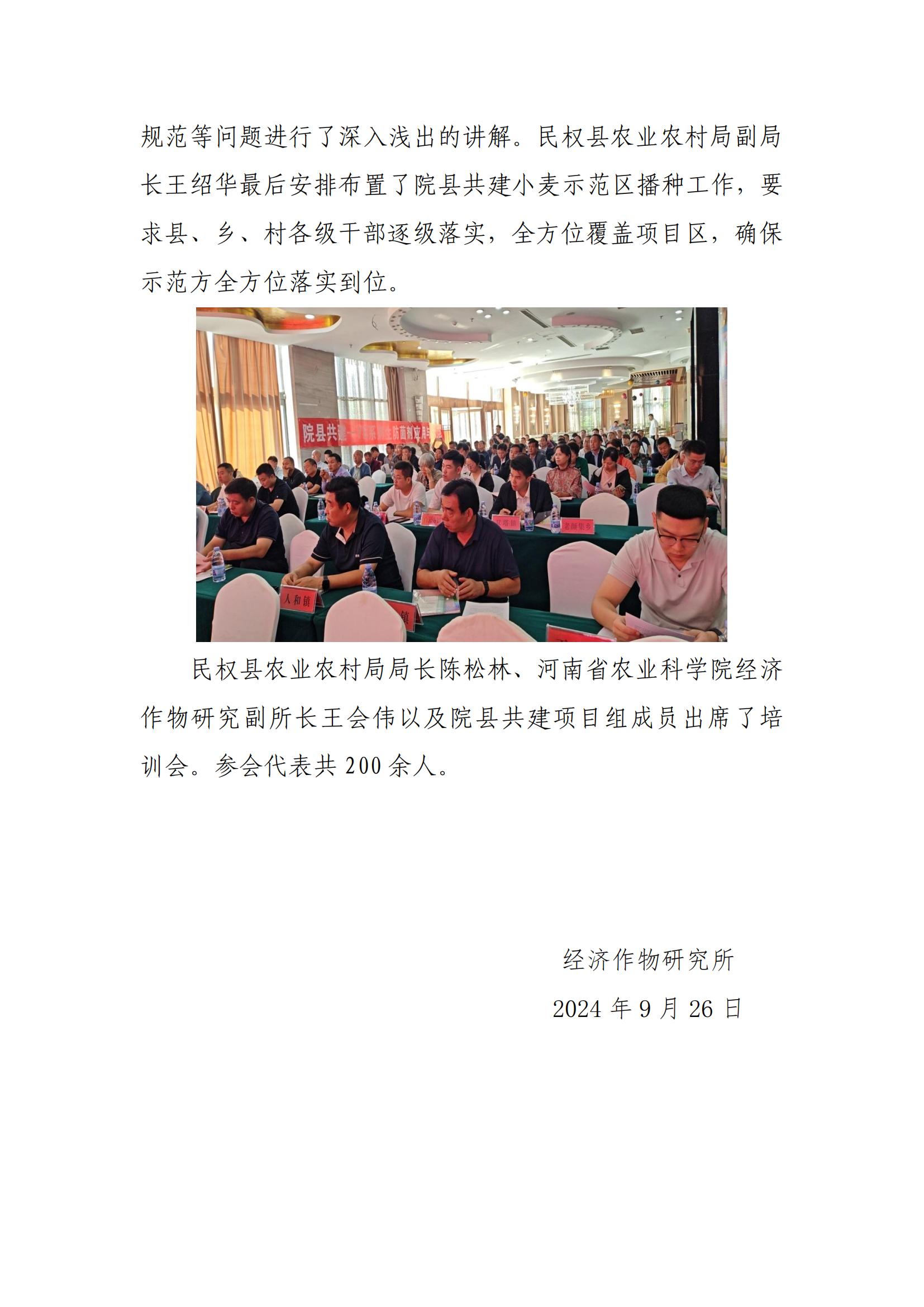 民权县院县共建现代农业科技综合示范县建设工作简报(2024年第09期)