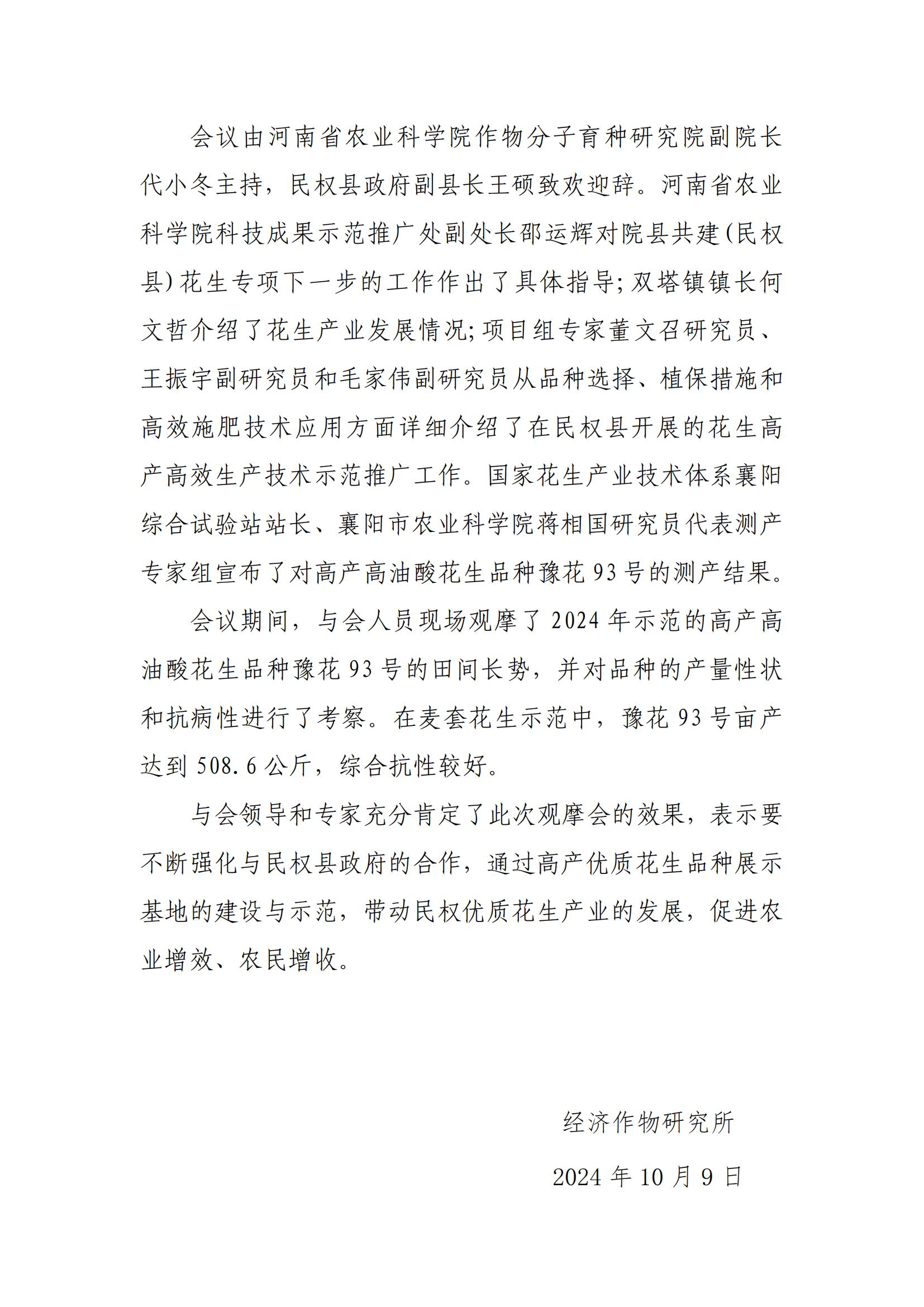 民权县院县共建现代农业科技综合示范县建设工作简报(2024年第10期)