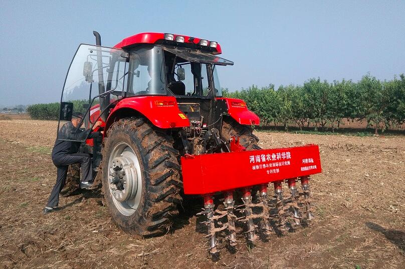 粉垄立式旋耕技术是24足球直播植物营养与资源环境研究所引进后并经过多年自主研发改进的一种新型耕作技术,先后获得国家专利5项,其中发明专利1项。经过多年(2011年至今)多点(15个基地)的试验表明,本技术耕作深度可调,一般在2050cm之间,耕作1次即可达到整地环节的犁地、旋耕耙地2次的作业整地效果。机具做业幅宽2 m,牵引动力在采用动力在73.5KW96KW之间,做业效率在每小时510亩。该技术能够有效的打破犁底层,改善土壤的结构,调节土壤生态环境,达到节约成本,增加产量,小麦当季增产幅度在20%左右,提高效益;同时对下茬作物玉米、花生、水稻也有持续的增产作用。