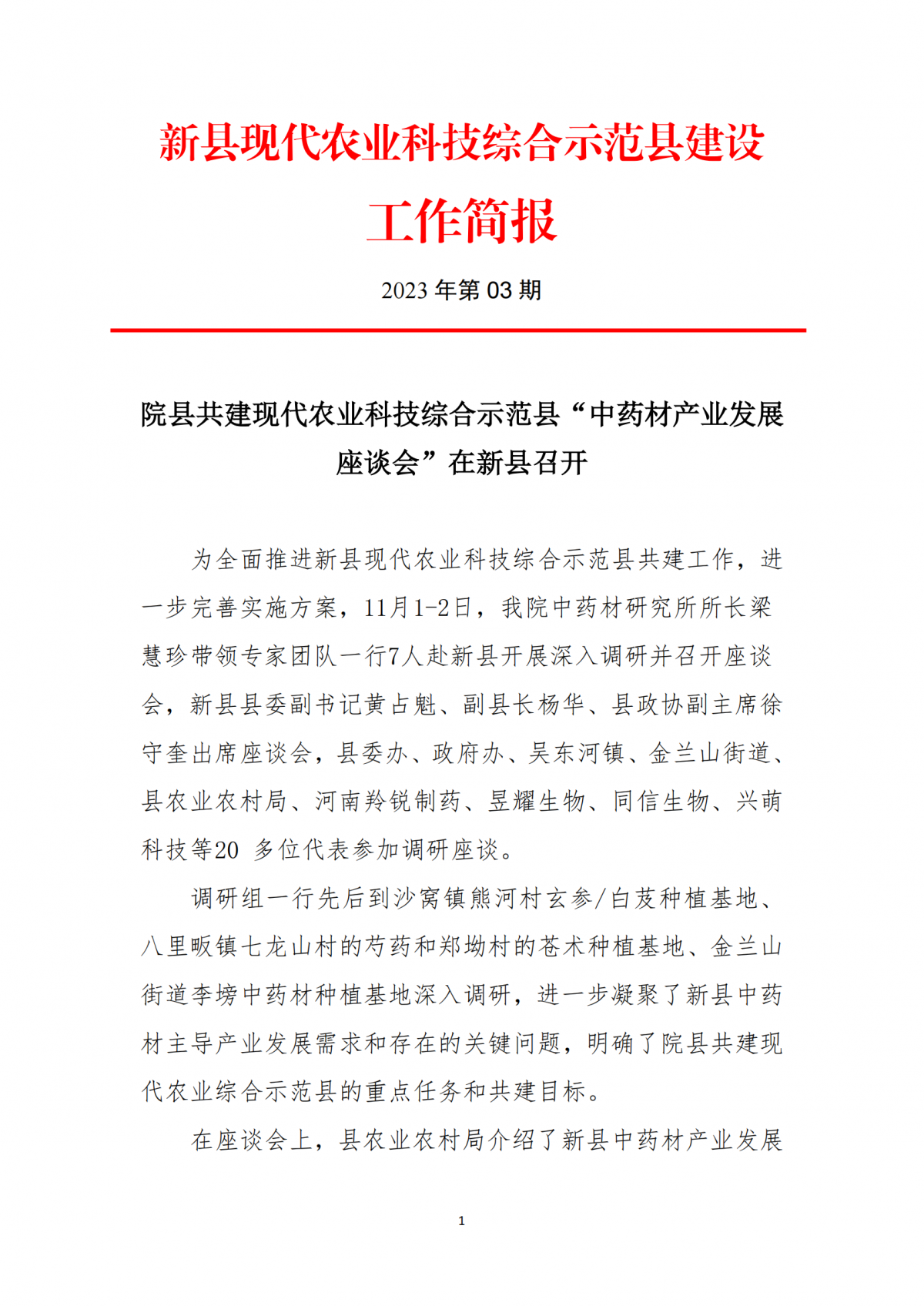 新县院县共建现代农业科技综合示范县建设工作简报(2023年03期)