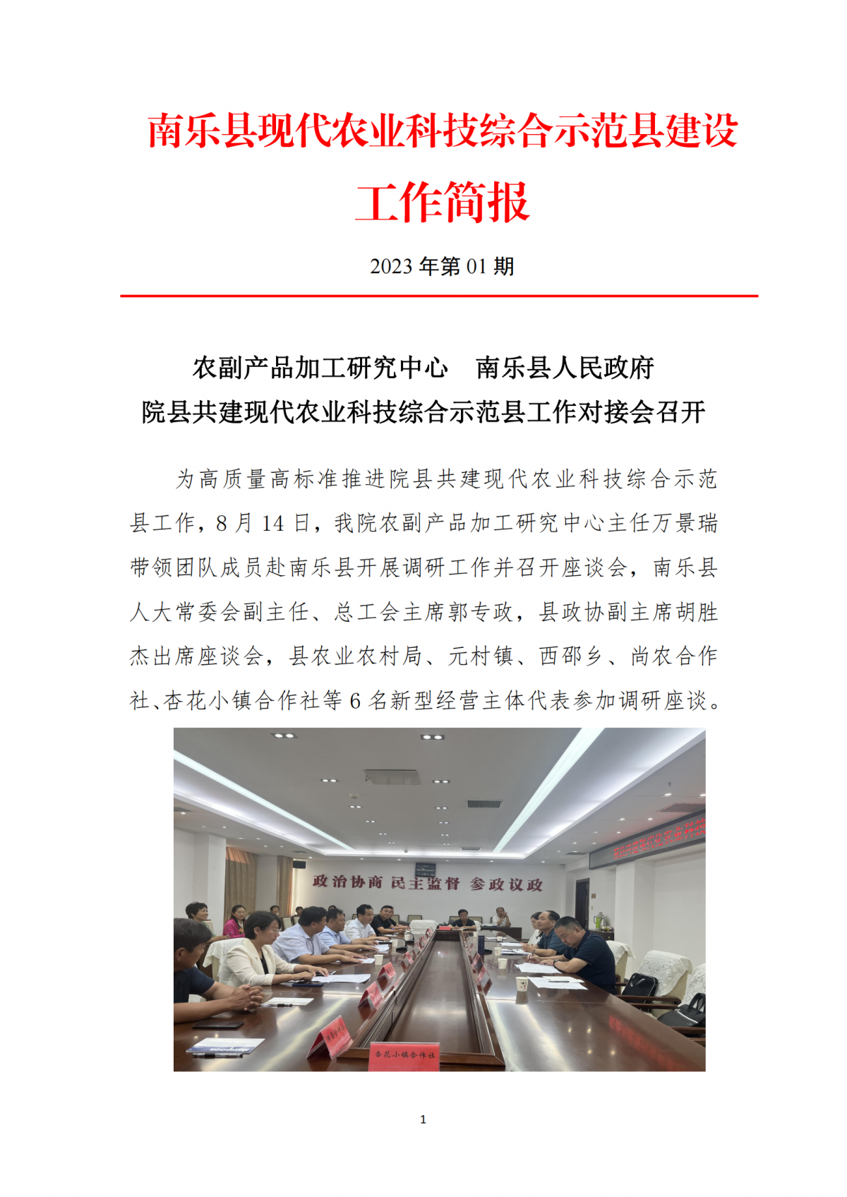 南乐县院县共建现代农业科技综合示范县建设工作简报(2023年01期)