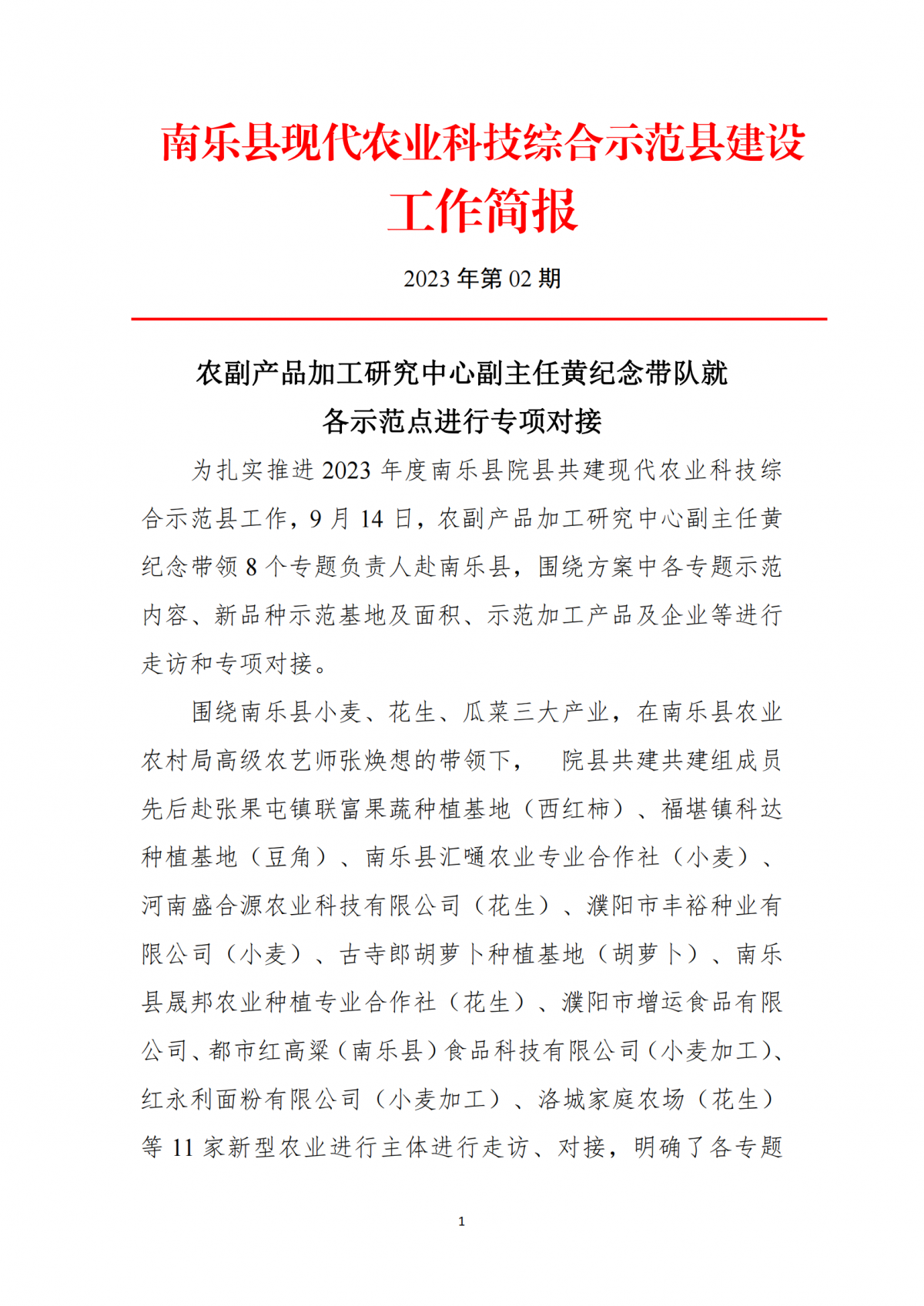 南乐县院县共建现代农业科技综合示范县建设工作简报(2023年02期)