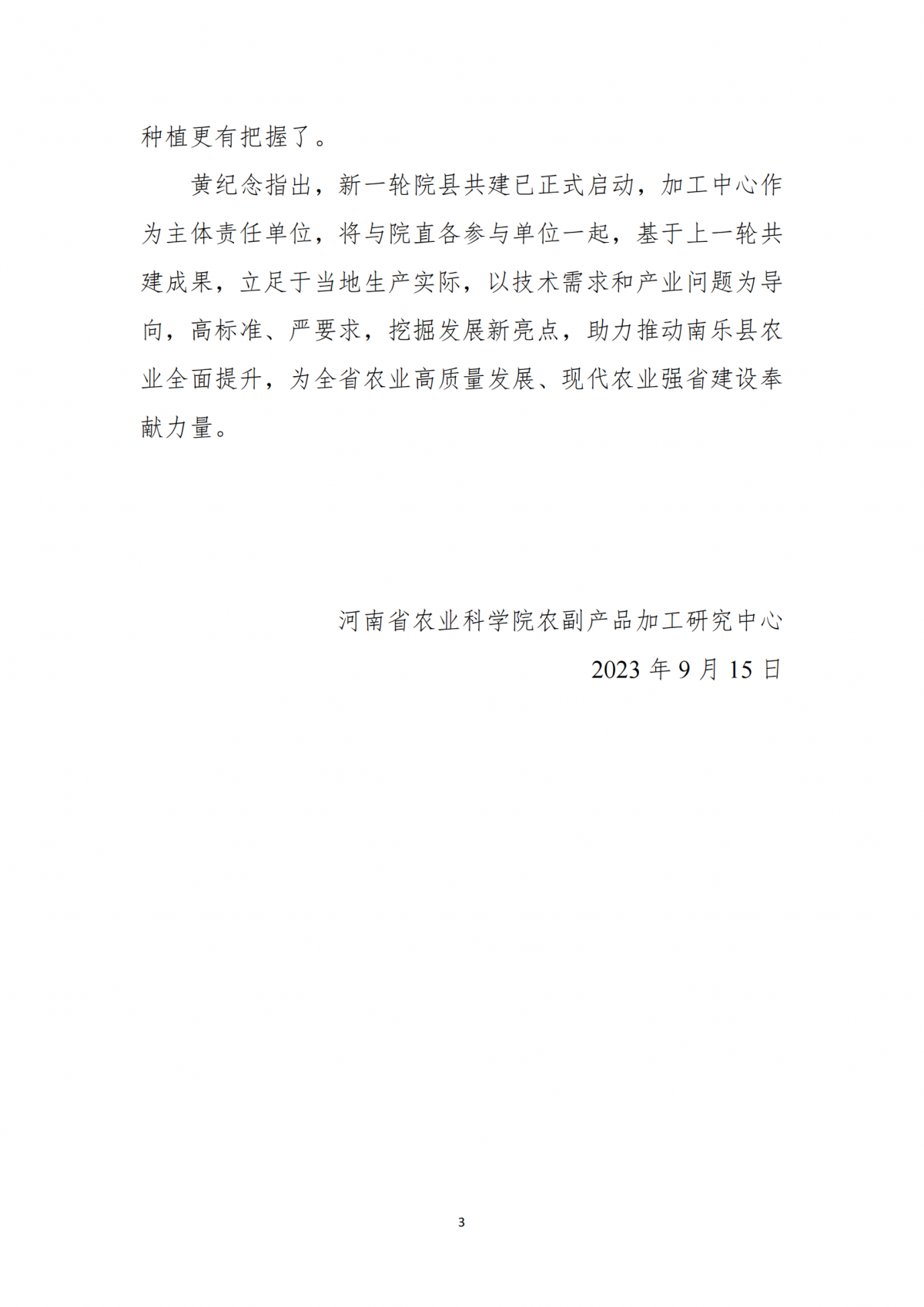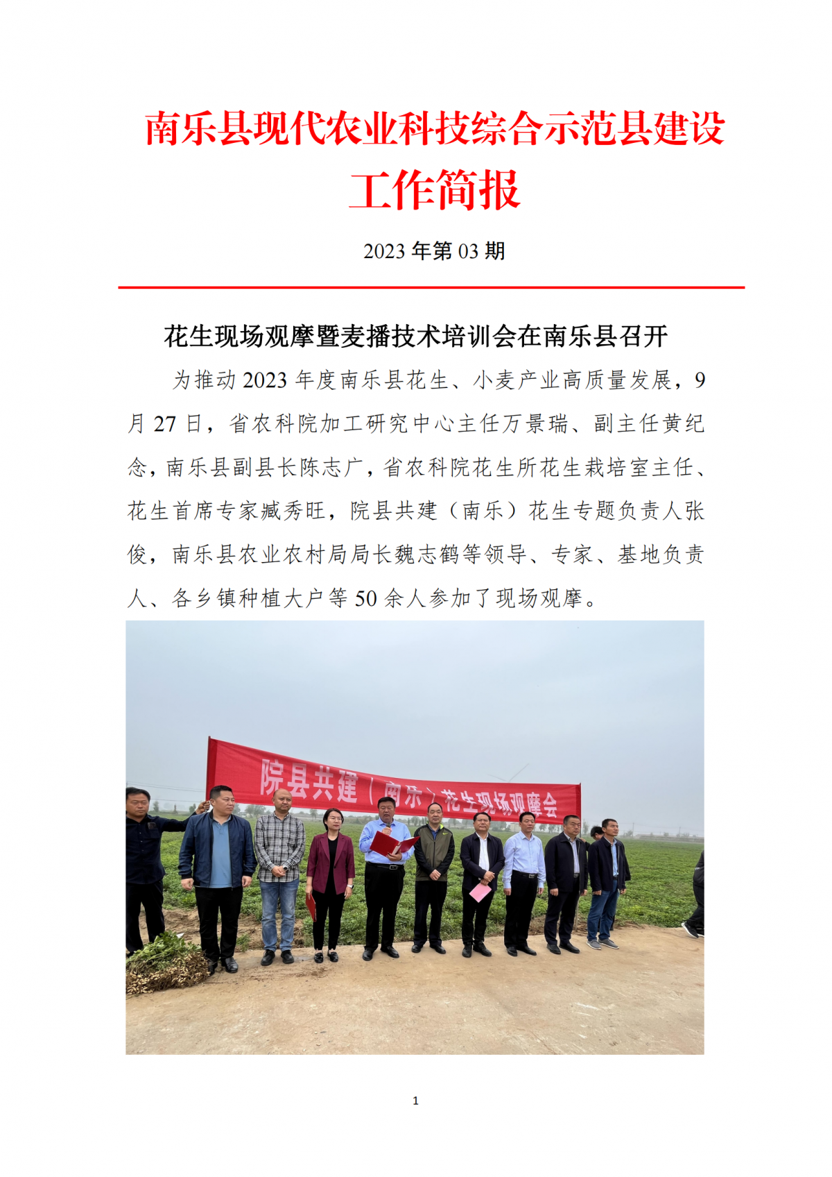 南乐县院县共建现代农业科技综合示范县建设工作简报(2023年03期)