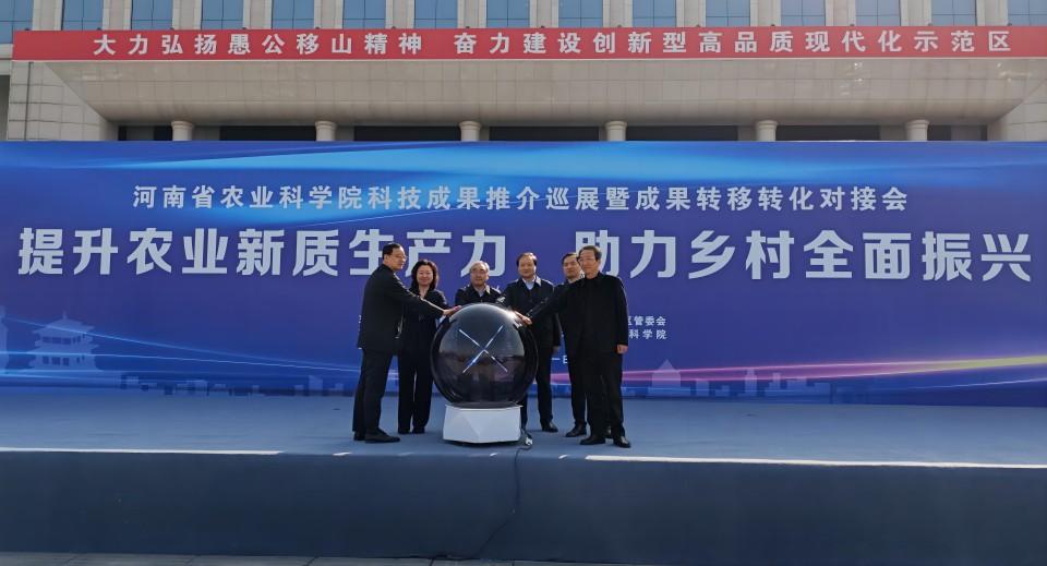 3月21日,24足球直播科技成果推介巡展暨成果转移转化对接会首站活动在济源举办。中国工程院院士、我院院长张新友,副院长王强,示范区领导张宏义、侯波、李会林、苗圃出席活动。我院23家研究所、长垣分院、秋乐种业等25家单位主要负责同志及当地企业代表参加本次对接会。