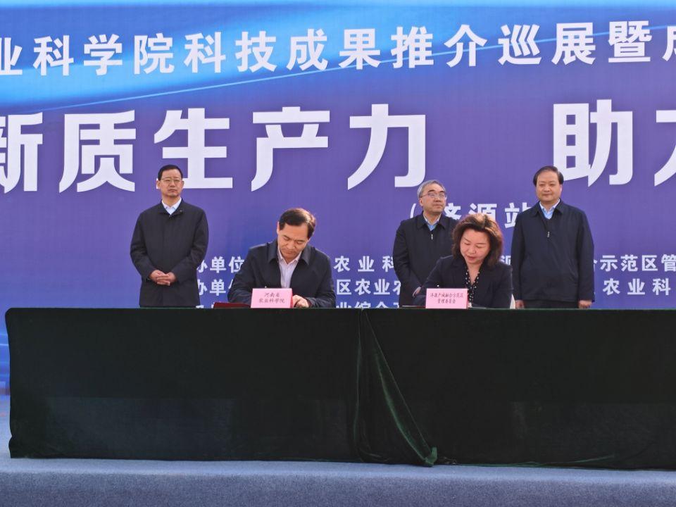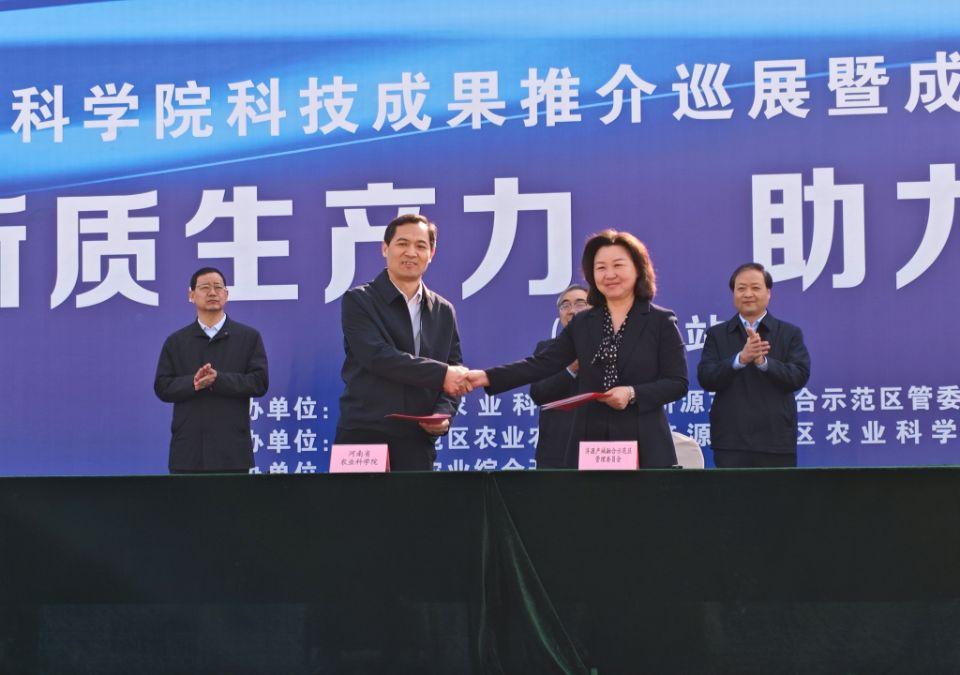 会上,我院与济源示范区签订了战略合作协议。院专家代表、示范区企业代表进行了发言。院属相关研究机构与济源示范区农科院等10家单位签订了合作协议。参会领导共同参观了我院61项新技术、105项新品种新产品展示。