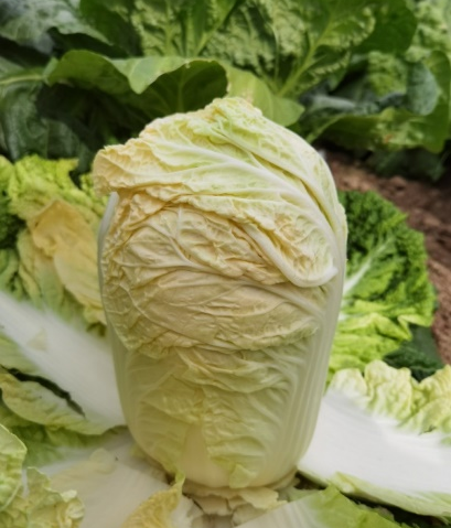 成果介绍:采用游离小孢子培养技术最新育成的桔红心大白菜品种。中熟品种,生育期70天左右。叶球叠抱,筒型,球顶圆。外叶深绿,叶面较皱、无毛,叶脉细。球高25-30厘米,单球重2.35千克左右,亩产净菜6000公斤左右。桔红心,粗纤维0.6%,抗坏血酸27.6 mg∙100g,可溶性糖3.06%。脆嫩,适宜凉拌、炒食、火锅等。多年试验未发生病毒病、霜霉病、黑斑病。抗干烧心。