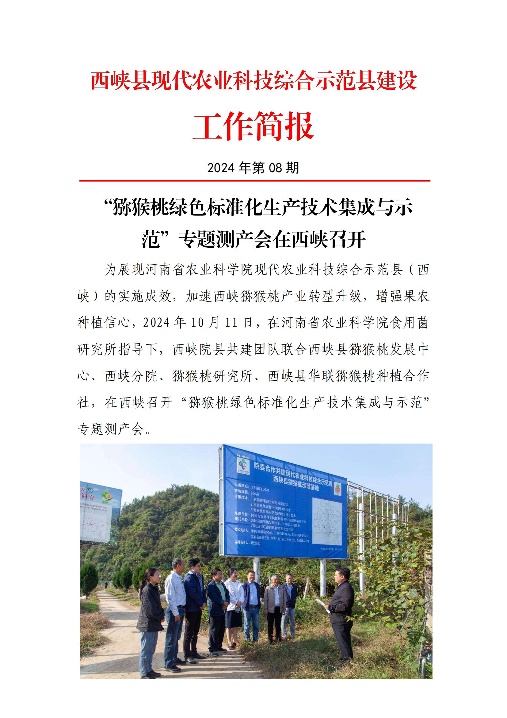 西峡县院县共建现代农业科技综合示范县建设工作简报(2024年第08期)