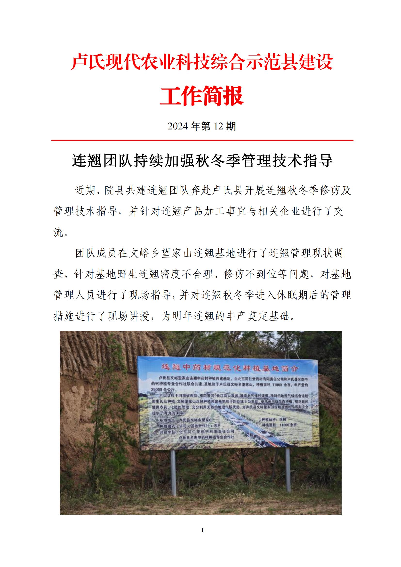 卢氏县院县共建现代农业科技综合示范县建设工作简报(2024年第12期)