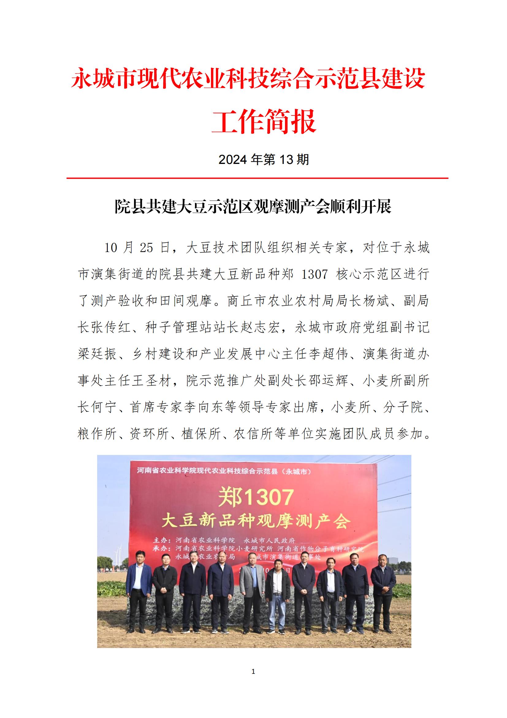 永城市院县共建现代农业科技综合示范县建设工作简报(2024年第13期)