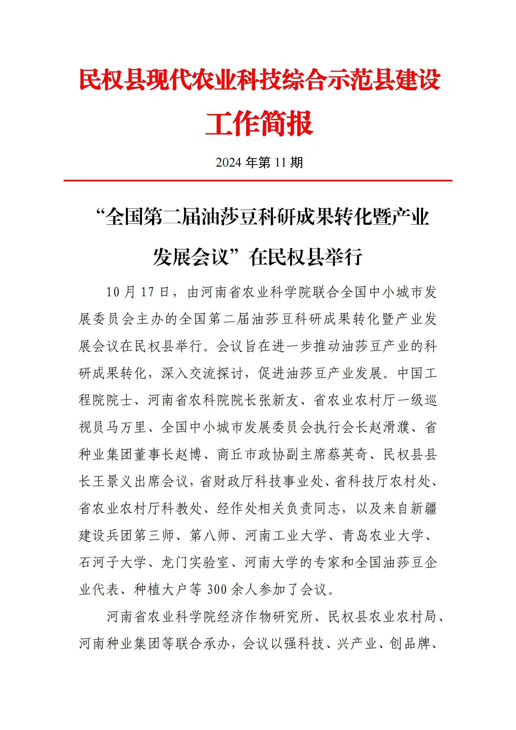 民权县院县共建现代农业科技综合示范县建设工作简报(2024年第11期)