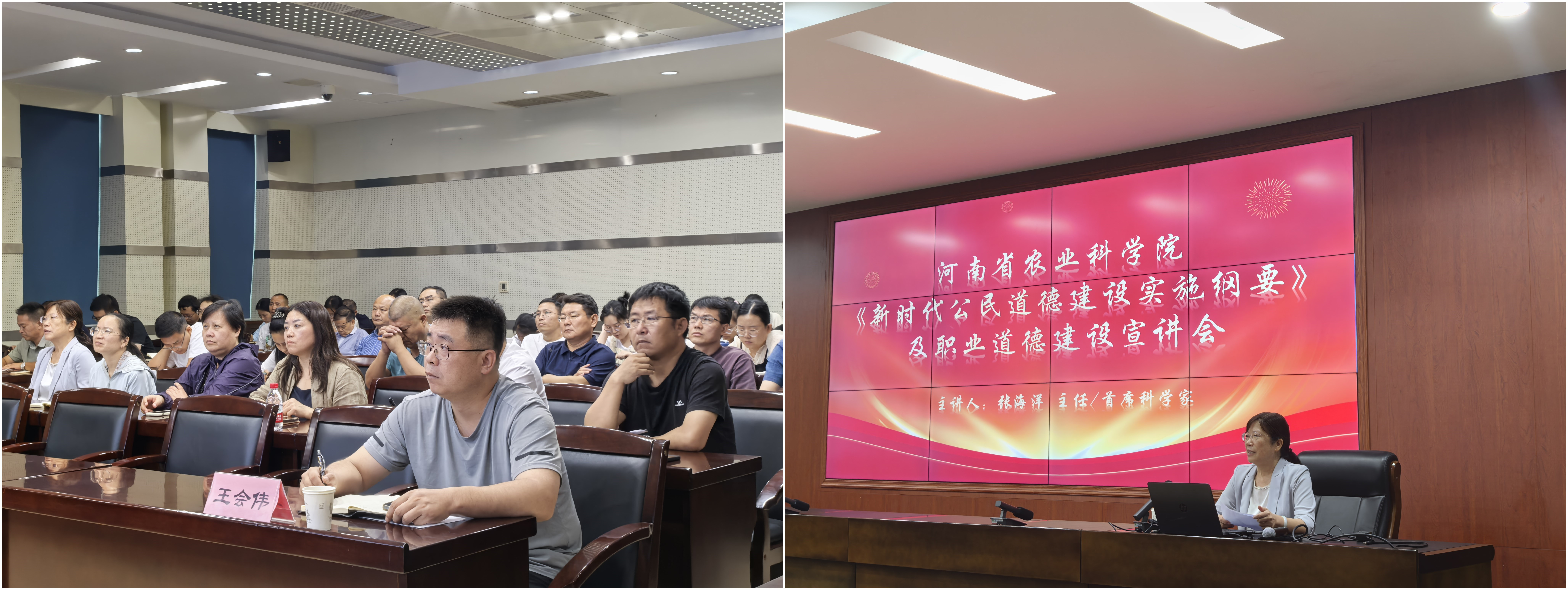 为深入贯彻习近平新时代中国特色社会主义思想,持续加强公民道德和职业道德建设,大力弘扬伟大的科学家精神,9月2日下午,我院举办《新时代公民道德建设实施纲要》及职业道德建设宣讲会,50余名干部职工参加活动。