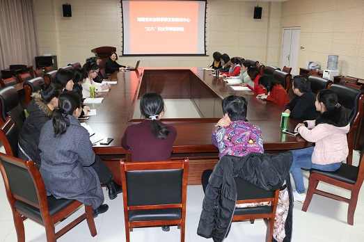 为庆祝“ 三八国际劳动妇女节”,提升广大女性职工综合素质,彰显我中心女性职工风采, 3 月7日, 我中心妇委会组织开展“ 三八” 妇女节专题讲座,由中心党支部书记梁慧珍主讲。中心全体在郑女性职工参加。