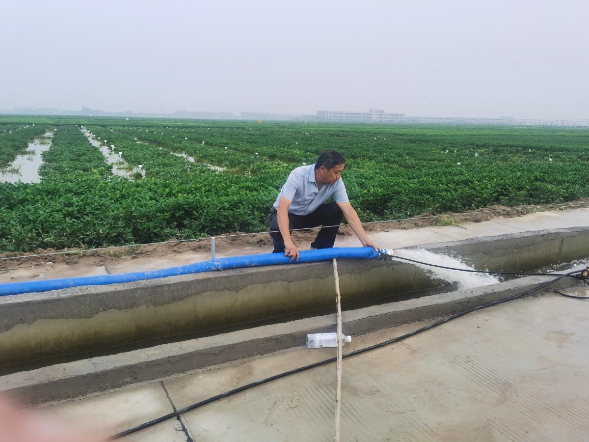 7月26日,在示范推广处的组织下,郑峥研究员深入新乡市平原示范区、原阳县等多个受灾严重乡镇、村庄,查看分析花生受灾情况,针对花生涝后土壤脱肥,指导种植户进行叶面追肥。