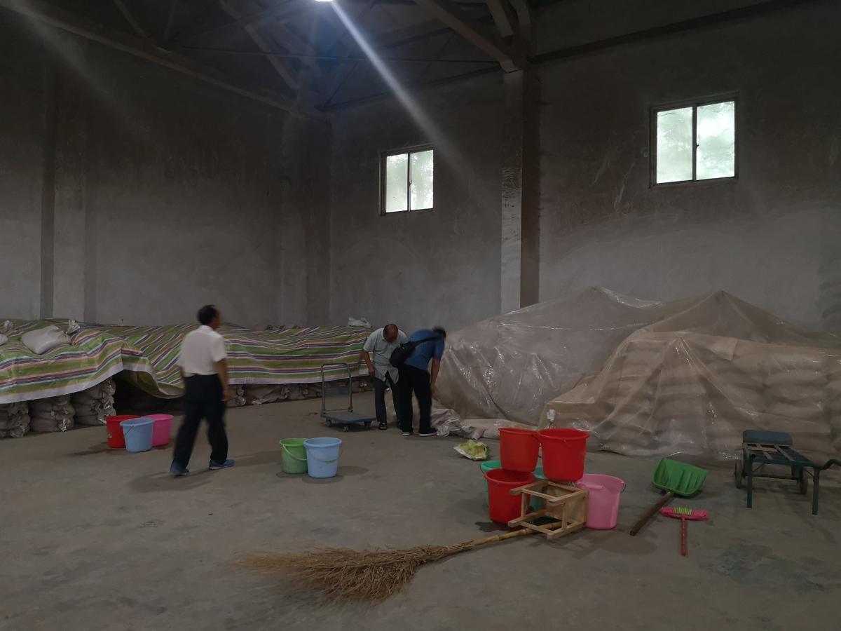 7月20日下午,小麦团队积极带头冒着大雨淌水到各个小麦储存仓库,查看房顶是否漏雨及进水情况,采取薄膜覆盖、麦糠和沙袋子堵水等措施,保证了小麦育种材料免受暴雨侵袭。