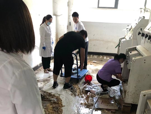小麦团队磨粉间位于创新楼负一层,地势较低,在磨粉间即将被淹的情况下,各团队成员冒雨及时抢救即将被淹的优质小麦,挽回了部分宝贵的科研材料。