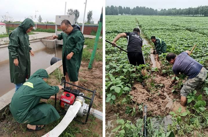 原阳基地遭受暴雨之际,试验地、道路出现严重积水,试验作物被淹,花生、大豆育种团队董文召、王金社、李海朝、张忠信、刘华、孙彦辉、张辉、武永康、王仕伟、练云、魏荷、李金英等同志,连续多日加班挖沟抢排,及时疏通试验地渠道,冒雨对试验田进行排水,减轻试验田受灾情况,挽救科研成果免遭洪涝损毁,保障科研试验顺利进行。