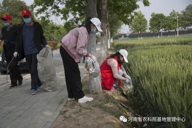 活动经过精心筹划、认真准备,由基地中心白乐高主任和张为书记分组带领职工,在科学试验区、产业化区和展示区内不同路段、地点进行垃圾清理。职工们手持垃圾袋,对道路、绿化带、灌渠、试验地地头等处的纸屑、塑料袋、饮料瓶、农药瓶、化肥袋及生活垃圾进行捡拾,大家不怕脏、不怕累,齐心协力,共同努力营造了面貌一新、干净整洁基地环境。