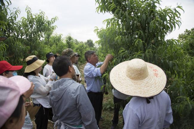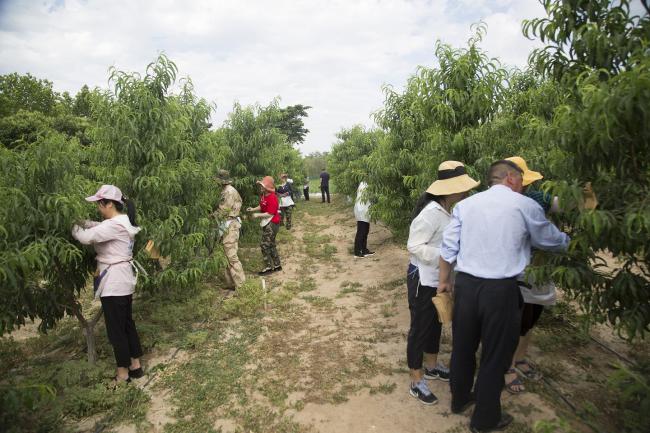 在第四个“全国科技工作者日”到来之际,5月29日上午,基地管理中心开展“科技为民、奋斗有我”主题党日活动,在基地晚熟桃示范园以开展优质果品管理技术培训的形式向科技工作者献上崇高的敬意,白乐高主任、张为书记、李国伟副主任和全体职工一起参加了此次活动。
