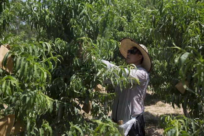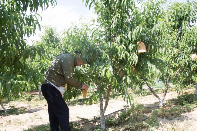 桃树进入果实膨大期管理重点是预防病虫害,尽量避免雨淋、日灼及冰雹、鸟害等。对果实进行套袋管理,是有效防治病虫入侵,减少农药、雨水污染,提高果实品质和优质果产量的重要措施。史胜利老师亲自示范,现场演示,并对果实套袋中容易出现的问题向大家进行详细讲解。每位职工看的仔细,学的认真,通过对果实套袋方法的学习,很快便掌握了果实套袋的技巧,全体职工学以致用,亲身实践,激发了广大职工重视科技进步和创新创造的热情。