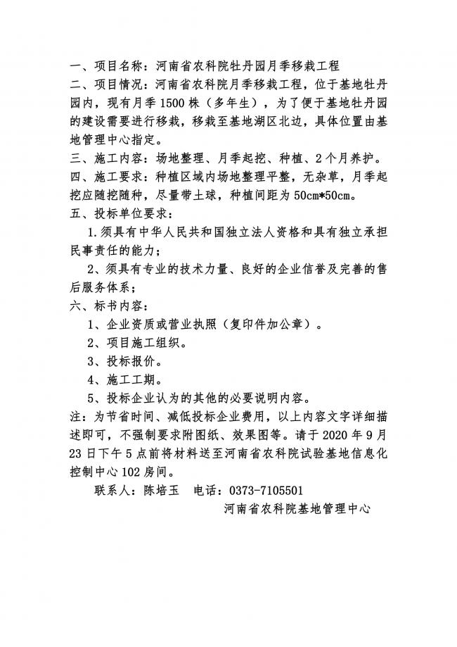 河南省农科院现代农业科技试验示范基地月季移栽工程询价公告
