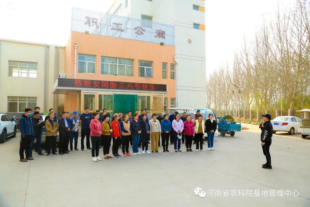 3月7日上午,风和日丽,春景正秾,全体干部职工齐聚公寓门前。张为书记首先代表领导班子向女职工致以节日祝贺。他说,将国际劳动妇女节引入中国恰好100年,女性地位和贡献今非昔比,百年妇女解放运动史充分证明,“幸福是奋斗出来的”;党的二十大作出加快建设农业强国的战略部署,新起点新征程更加需要奋斗,希望全体职工团结一致,开拓进取,为推动基地事业高质量发展再立新功。