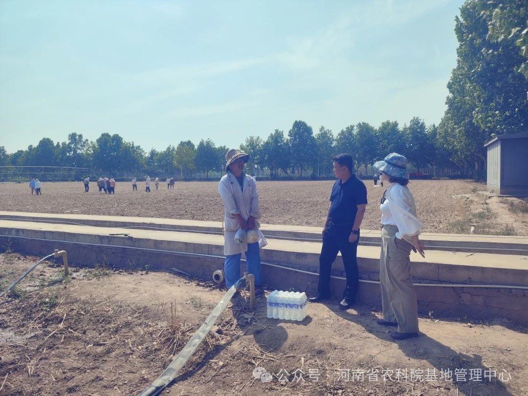 夏日炎炎,热浪袭人。今天,基地管理中心开展三夏送清凉慰问活动,为奋战在基地生产一线的科研人员送去关怀和清凉。基地中心与芝麻中心的带班同志们深入到小麦试验地、玉米试验地、药用植物试验地、DUS测试中心试验地、芝麻试验地等处,为在地工作者们送去了矿泉水、西甜瓜等降暑物品,提醒大家要注意劳逸结合、防暑降温,确保身体健康和生产安全。