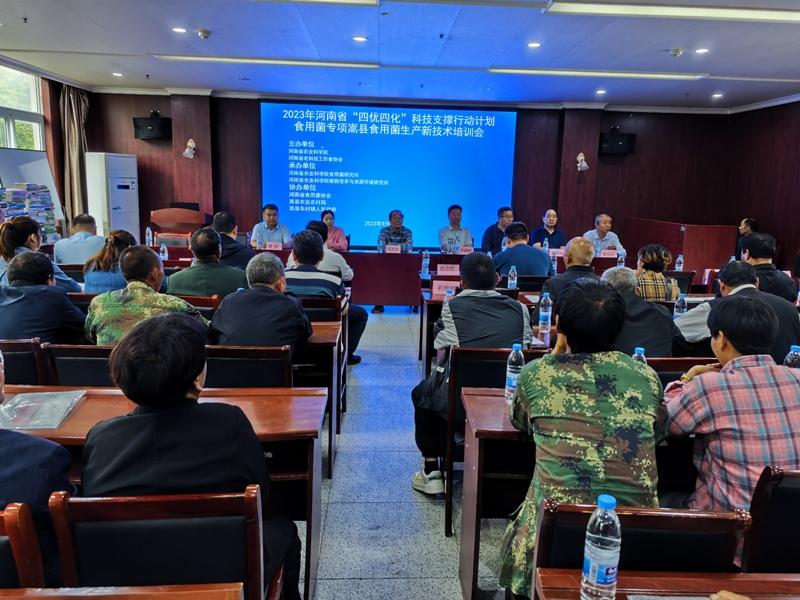 12日上午,由省农科院和省老科协联合主办的2023年河南省四优四化科技支撑行动计划食用菌专项——嵩县食用菌生产新技术培训会在车村镇举行。马万杰出席开班仪式并讲话乔鹏程作了题为《自主创新助力农业强省建设  成果转化引领乡村产业发展》的报告,嵩县各乡镇食用菌种植户100多人参加培训。
