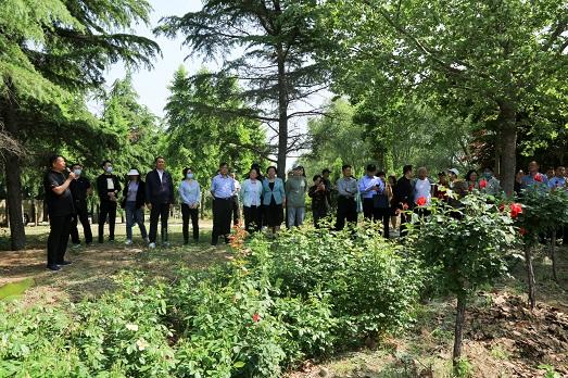观摩调研过程中,协作组一行首先参观了基地中心沙盘,观看了基地宣传片,而后又实地查看了现代农业示范田和月季园、中药材试验地等科研场所。观摩过程中,参与人员兴趣盎然地就观赏月季的种植、嫁接以及中药材的种质培育、现代农业发展前景与乡村振兴等话题与相关专家进行了详细的沟通交流。