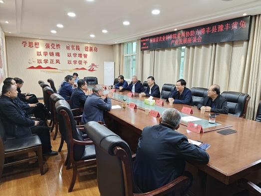 随后,我院老科协在清丰县农村农业局还组织召开豫丰黄兔产业发展座谈会。会上清丰县老科协会长赵怀欣同志简要介绍豫丰黄兔由来,当前的生产及产业发展情况,介绍了清丰县老科协助力三农活动情况。县农业农村局赵彦景局长及企业代表分别介绍了县委、县政府的期盼与举措,以及豫丰黄兔三产融合情况。在听取大家的汇报交流之后,院老科协乔鹏程会长对畜牧所豫丰黄兔示范推广和品种选育工作给予肯定重点介绍了我院的成果、技术、人才优势以及在全省创建科技成果示范基地方面的工作情况。同时,还对豫丰黄兔产业发展提出了具体建议一是要切实做好豫丰黄兔全产业链发展的顶层设计,科学规划,全面推进豫丰黄兔产业高质量发展。抢抓机遇,不断延链补链,抓好“三产”融合发展,增加防风险能力尤其要做好品种保护和新品系选育工作,提高种业的核心竞争力和豫丰黄兔的整体经济效益。加强与清丰县老科协的联系与互动,共同助力豫丰黄兔产业的再提升。