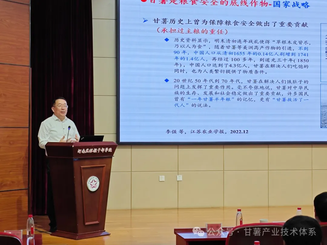学术论坛环节由张振臣研究员主持,李强首席和岗位科学家张永春、孙厚俊、张文毅以及郑州试验站站长杨育峰分别做了题为“我国甘薯产业特点与体系服务县域经济发展”、“植薯土壤健康管理与甘薯高效施肥”、“河南甘薯主要病虫害识别防控及潜在风险”、“甘薯生产机械化技术发展现状与趋势”、“河南及兰考甘薯产业发展现状与展望”的报告,几位专家的报告受到与会者的欢迎。