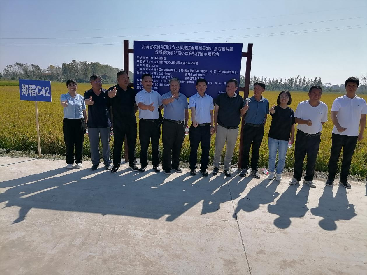 郑稻C42是省农科院粮作所水稻团队培育的优良食味香型粳稻新品种,该品种于2022年通过河南省审定,其有抗伏能力强、亩产量大、外观好、食味优等特点,达优质食用稻品种品质2级标准,在豫南罗山、息县、淮滨、光山及豫北原阳、濮阳等地均有种植。示范推广3年来,一般亩产均在600公斤以上,高产田每亩可达700公斤以上,此次有机种植测产稻谷亩产量达到495.99公斤。